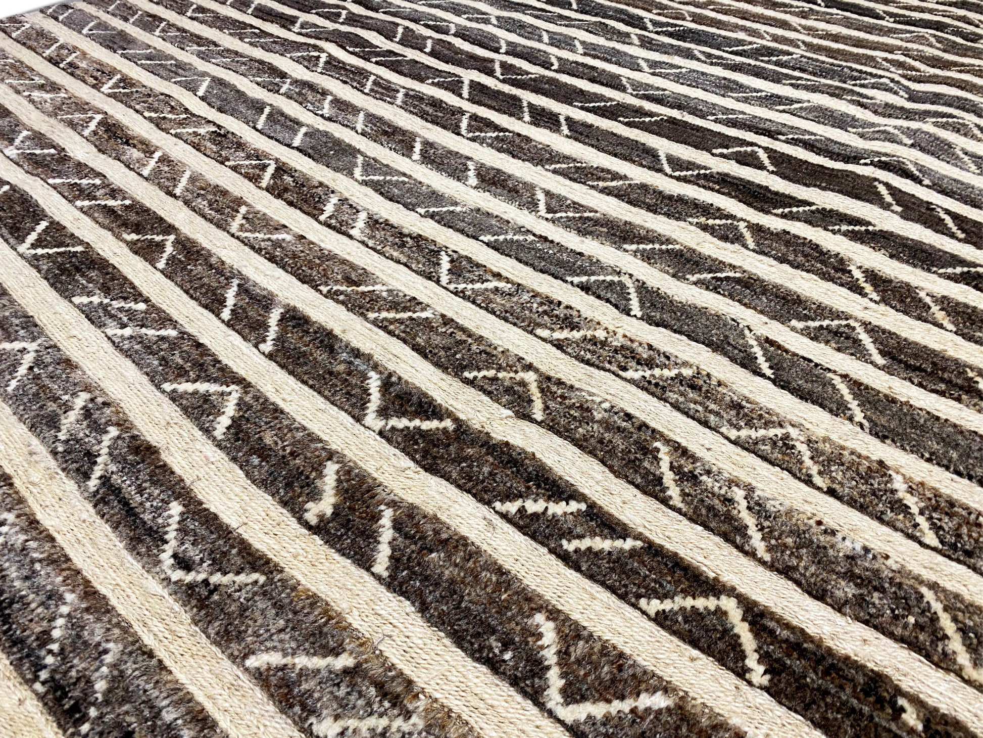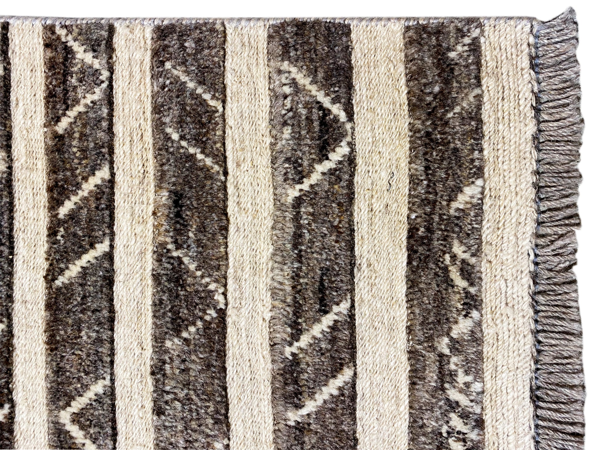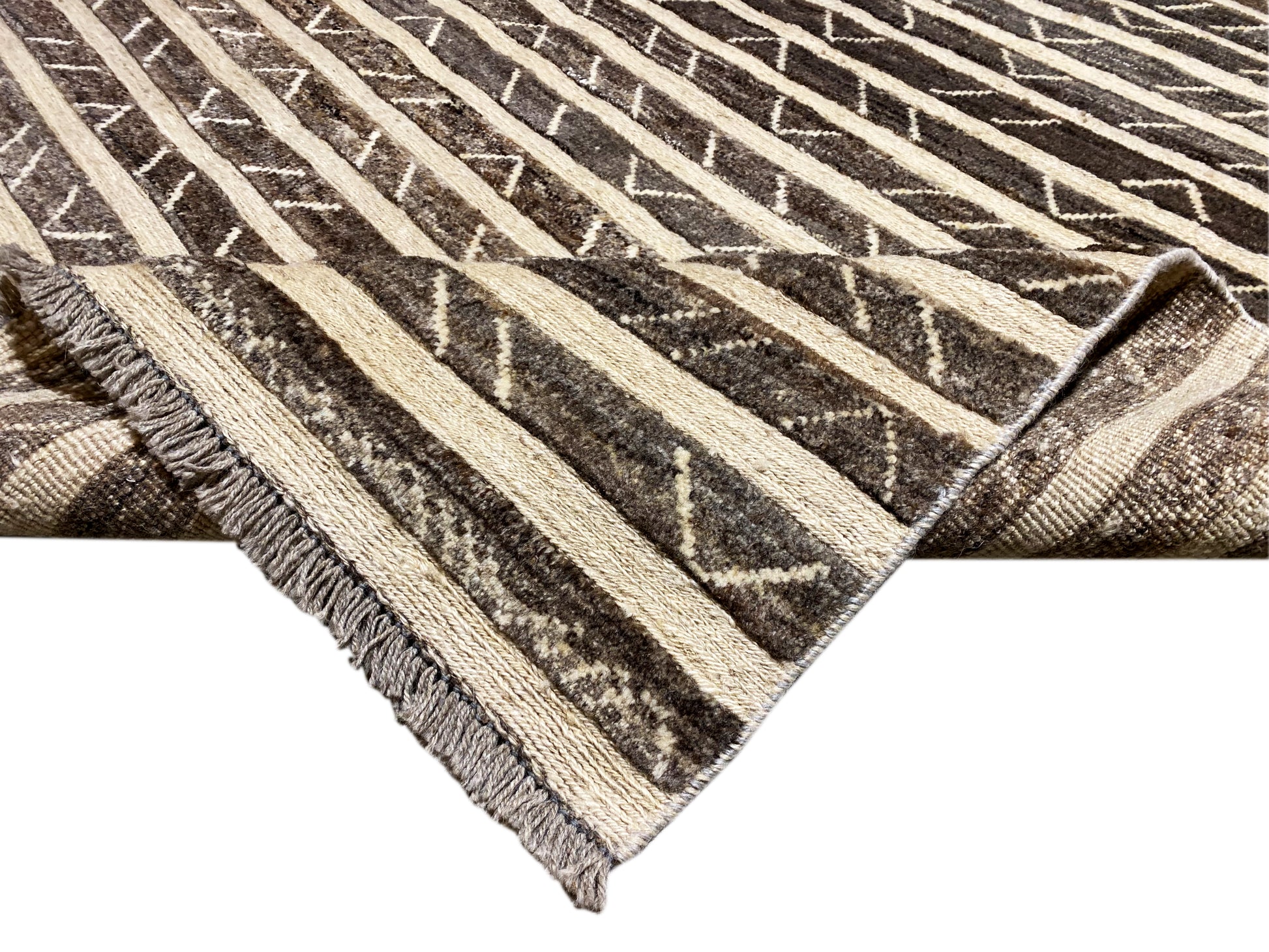Esta alfombra Kelim Gabbeh tejida a mano, hecha de 100% lana hilada a mano, cautiva con su cálida paleta de colores marrones y finas franjas geométricas que aportan a cualquier espacio una atmósfera moderna y a la vez acogedora. Con un tamaño de 193x150 cm, es ideal para salas de estar o comedores y combina perfectamente con estilos de decoración modernos, bohemios y rústicos. El característico patrón de franjas con sutiles elementos tribales aporta profundidad visual, mientras que la alta calidad de fabricación garantiza durabilidad, resistencia y una sensación agradable y suave al pisar, perfecto para un hogar con estilo y comodidad.