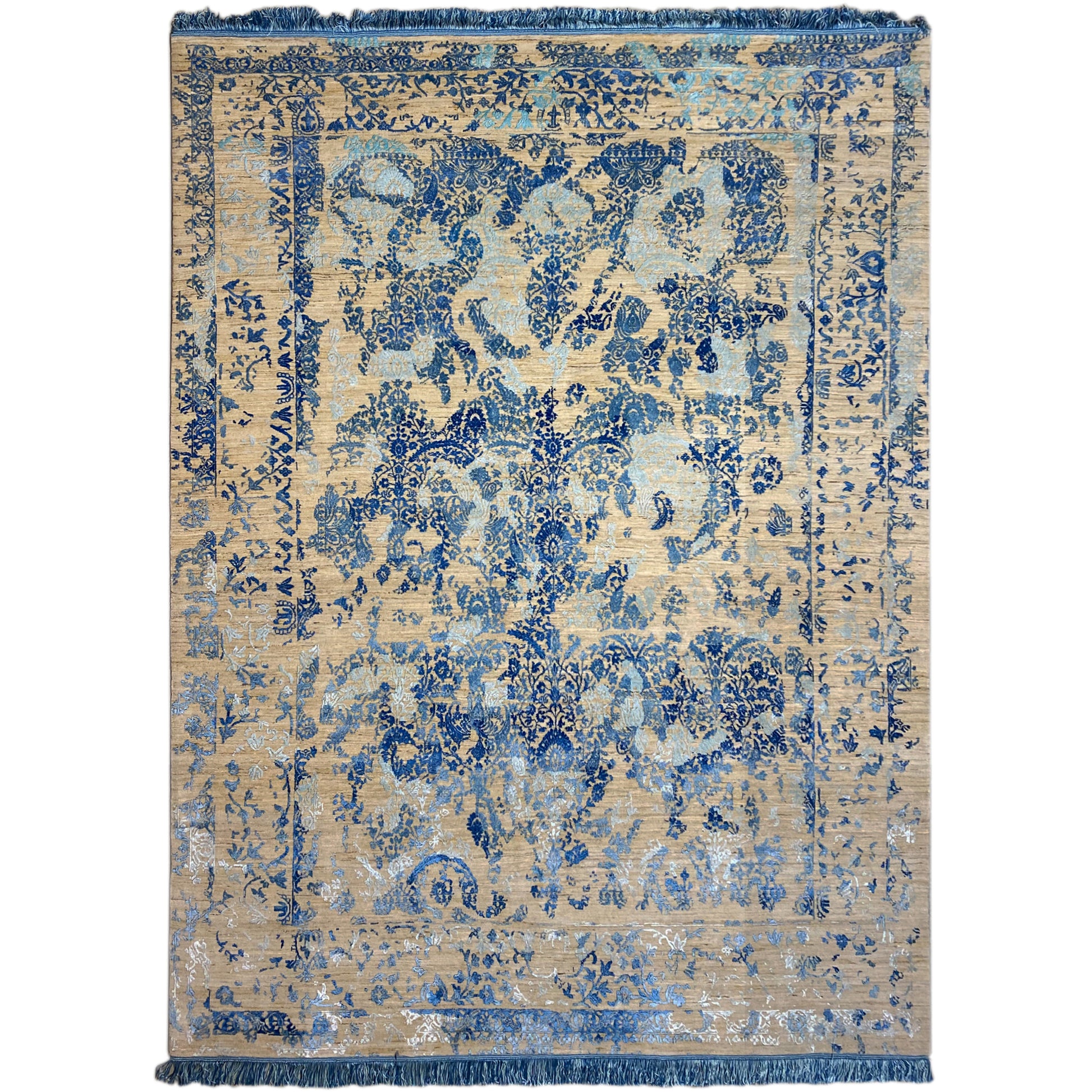 Dale estilo a tu hogar con esta alfombra de diseño tejida a mano en elegantes tonos azules, tamaño 308x255 cm. Fabricada con una mezcla de alta calidad de lana y viscosa, presenta un patrón floral clásico, perfecto para estilos de vida clásicos y modernos. Ideal para salas de estar o salones, esta alfombra aporta estructura, calidez y elegancia a cualquier espacio. El suave pelo ofrece una agradable sensación al caminar y su aspecto detallado atrae todas las miradas.