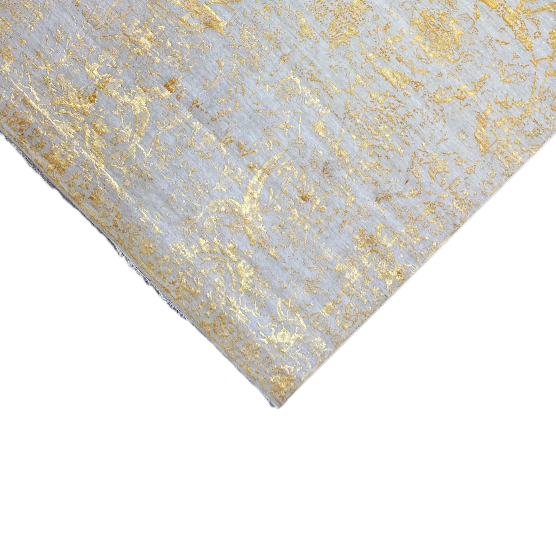 Embellezca su hogar con esta exquisita alfombra de diseño hecha a mano. El fascinante patrón en gris y dorado ofrece un estilo de decoración moderno y opulento que aporta un toque lujoso a cualquier habitación. Fabricada con lana de alta calidad y viscosa brillante, esta elegante alfombra (316x245 cm) no solo ofrece un atractivo visual, sino también una agradable textura y durabilidad para su interior.