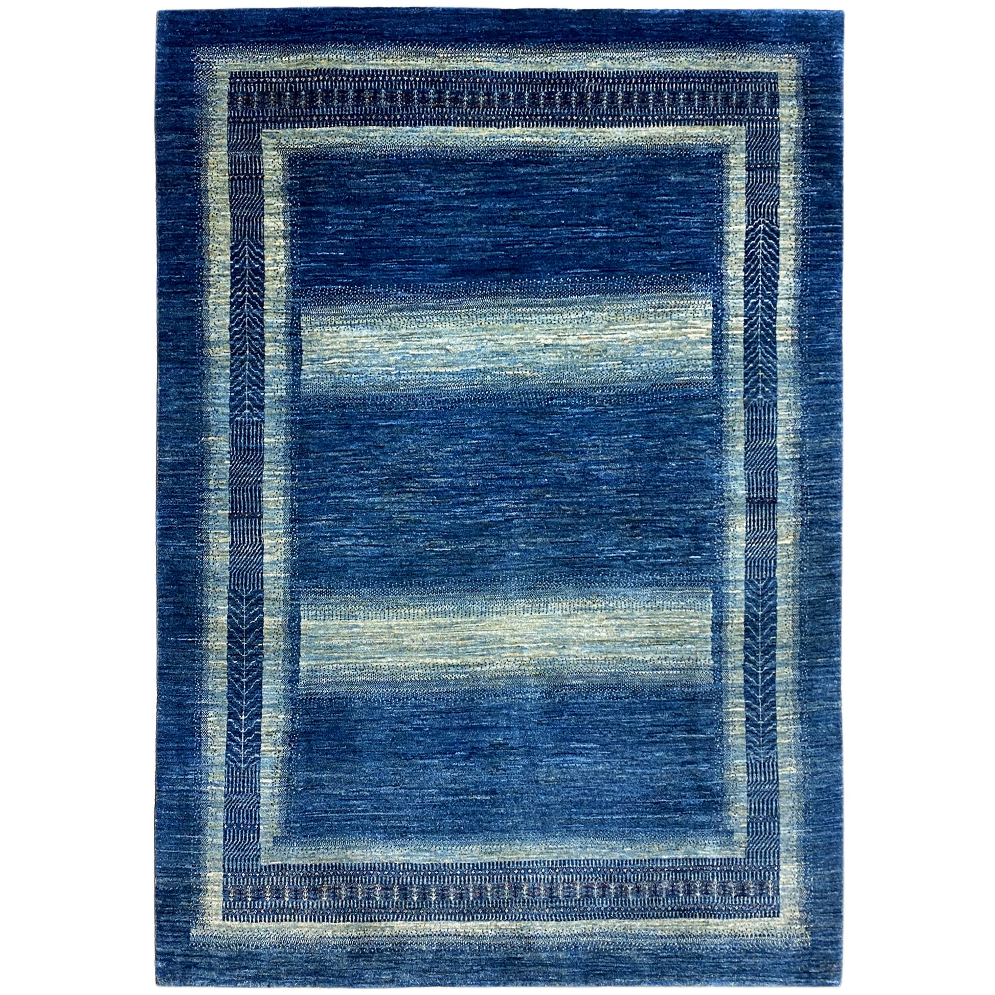 Esta fascinante alfombra Luri Gabbeh, tejida a mano con lana hilada a mano y teñida con plantas, se presenta en tonos azules profundos con un patrón rectangular llamativo y rayas discretas. Con un tamaño de 210x160cm, es un complemento ideal para una variedad de estilos de decoración, desde marítimo hasta moderno, y crea una atmósfera tranquila y elegante. La artesanía auténtica y los materiales naturales hacen de esta alfombra una obra de arte duradera y única que aporta comodidad y profundidad estética a su hogar.