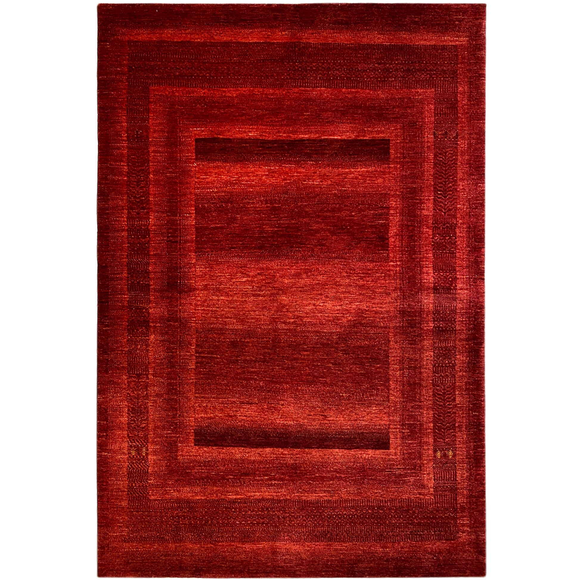 Esta alfombra Gabbeh Luri tejida a mano en intensos tonos rojos aporta profundidad y estructura a espacios modernos y eclécticos. Fabricada con lana hilada a mano y teñida con plantas, muestra un elegante degradado de color con un borde enmarcado geométricamente. Con sus medidas de 247x173 cm, es ideal como un punto focal con estilo en salas de estar, comedores o salones.