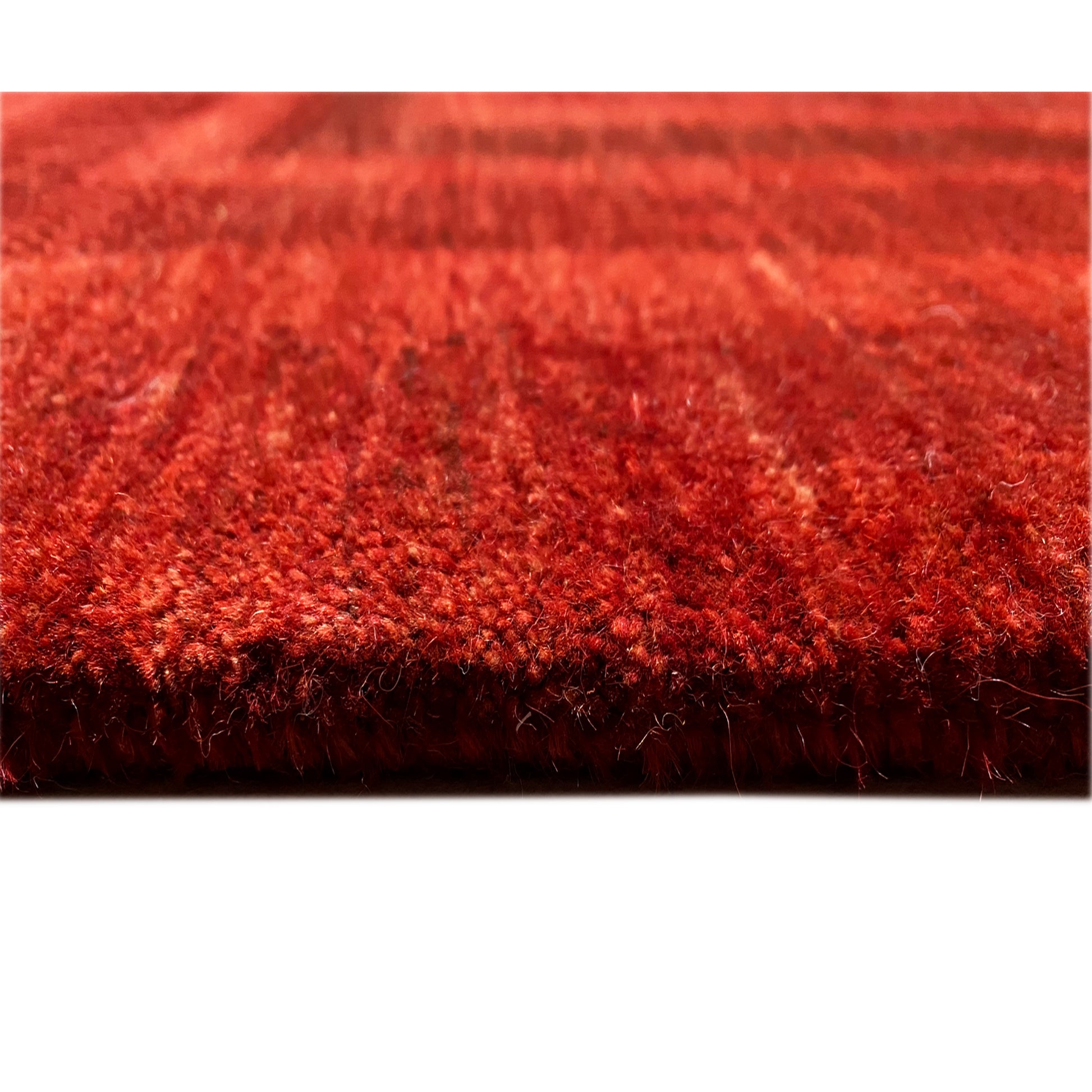 Una lujosa alfombra Gabbeh Luri en un degradado rojo profundo, embellecida con un delicado patrón de doble borde trabajado finamente. Con unas medidas de 247x184 cm, esta alfombra de lana tejida a mano está teñida con plantas y destaca por su excepcional brillo de color, textura y calidez. Un punto culminante atemporal para espacios modernos y clásicos.