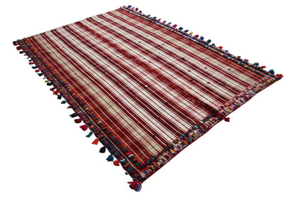 Los Jajim son conocidos principalmente por su singular intensidad de color y calidad. Esto se logra mediante procesos naturales de teñido con plantas. A diferencia de nuestras otras alfombras, los Jajim se tejen y no se anudan. Este proceso de fabricación hace que el Jajim sea muy plano. Este proceso de producción también es una tradición nómada de siglos de antigüedad. Los nómadas no solo usaban las alfombras tejidas terminadas como decoración de suelo, sino también, entre otras cosas, como decoración de paredes o como material para fabricar tiendas. Técnicas especiales de procesamiento y colores naturales obtenidos de plantas le dan a los Kelims un aspecto único.