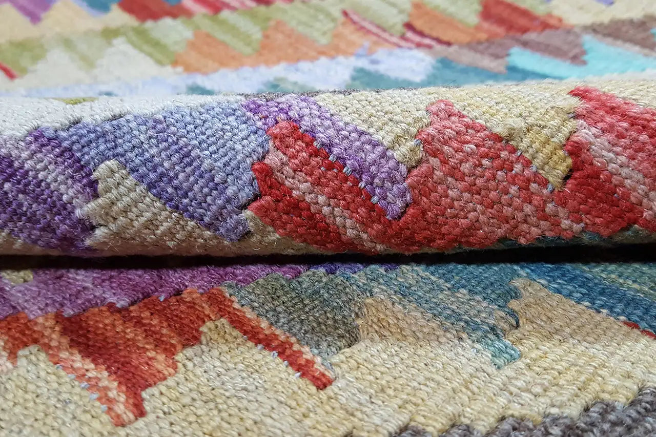 Los kilims de origen afgano son especialmente conocidos por su singular intensidad de color. Esta se obtiene mediante procesos naturales de teñido con plantas. Los kilims de esta región, al igual que nuestras otras alfombras, están hechos de lana hilada a mano y producida regionalmente. Gracias a los materiales naturales y a la alta calidad de fabricación, las alfombras son especialmente duraderas y resistentes.