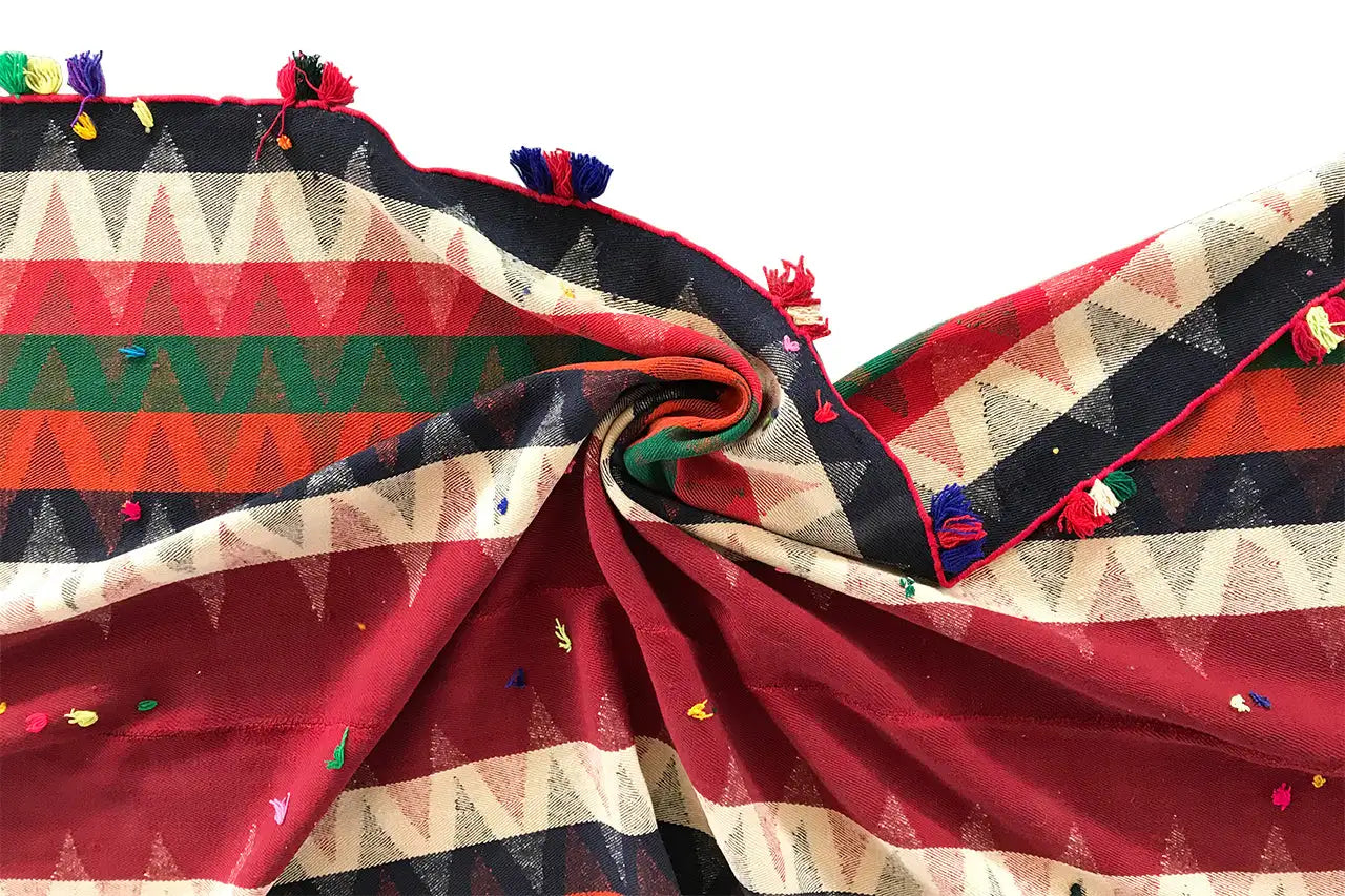 Los Jajim son conocidos principalmente por su singular intensidad de color y calidad. Esto se logra mediante procesos naturales de teñido con plantas. A diferencia de nuestras otras alfombras, los Jajim se tejen y no se anudan. Este proceso de fabricación hace que el Jajim sea muy plano. Este método de producción también es una tradición nómada de siglos de antigüedad. Los nómadas no solo usaban las alfombras tejidas terminadas como decoración de suelo, sino también, entre otras cosas, como decoración de paredes o como material para fabricar tiendas. Técnicas especiales de procesamiento y colores naturales obtenidos de plantas le dan a los Kelims un aspecto único.
