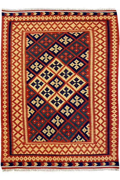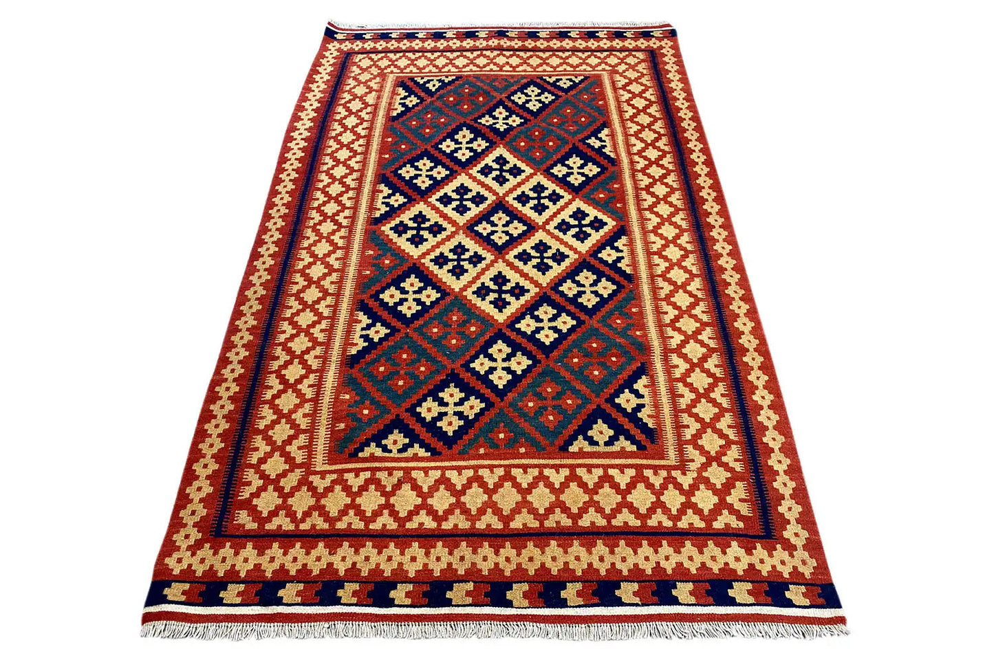 A diferencia de nuestras otras alfombras, los kilims se tejen y no se anudan. Este proceso de fabricación hace que el kilim sea muy plano. Este proceso de fabricación también es una tradición nómada de siglos de antigüedad. Los nómadas no solo usaban las alfombras tejidas terminadas como decoración de suelo, sino también, entre otras cosas, como decoración de paredes o como material para fabricar tiendas. Los métodos especiales de procesamiento y los colores naturales obtenidos de plantas le dan a los kilims un aspecto único.