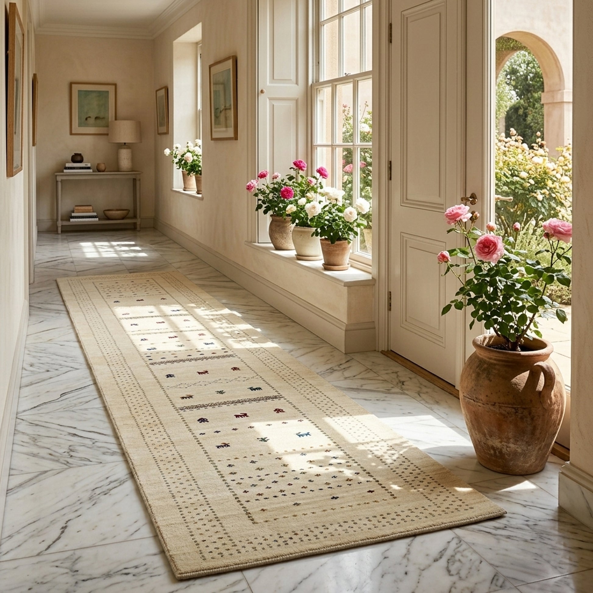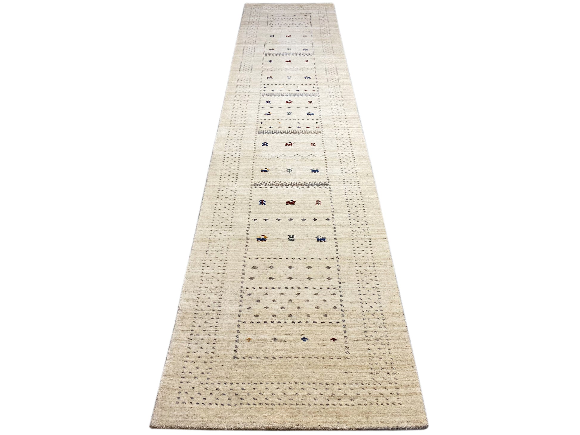 Dieser handgewebte Loom Luri Teppich aus hochwertiger Wolle vereint traditionelle Handwerkskunst mit zeitloser Eleganz. Die sanfte Cremefarbe passt perfekt zu modernen, skandinavischen und klassischen Einrichtungsstilen und sorgt für eine helle, freundliche Atmosphäre. Das feine, geometrisch-traditionelle Muster mit dezenten ethnischen Motiven verleiht dem Läufer eine authentische und stilvolle Optik. Mit seiner großzügigen Größe von 400x82 cm ist er ideal für lange Flure oder Korridore und bietet gleichzeitig Komfort, Wärme und Langlebigkeit für den täglichen Gebrauch.