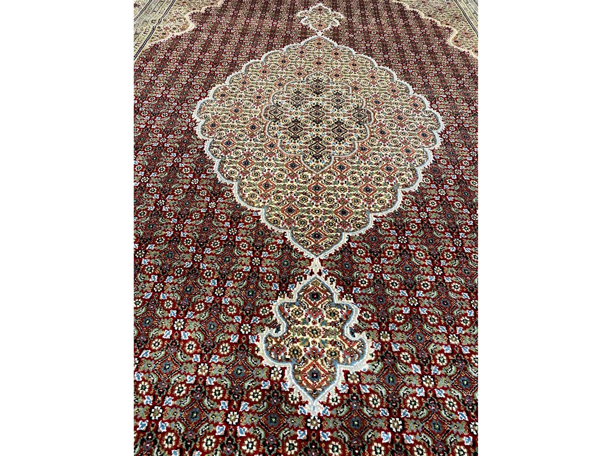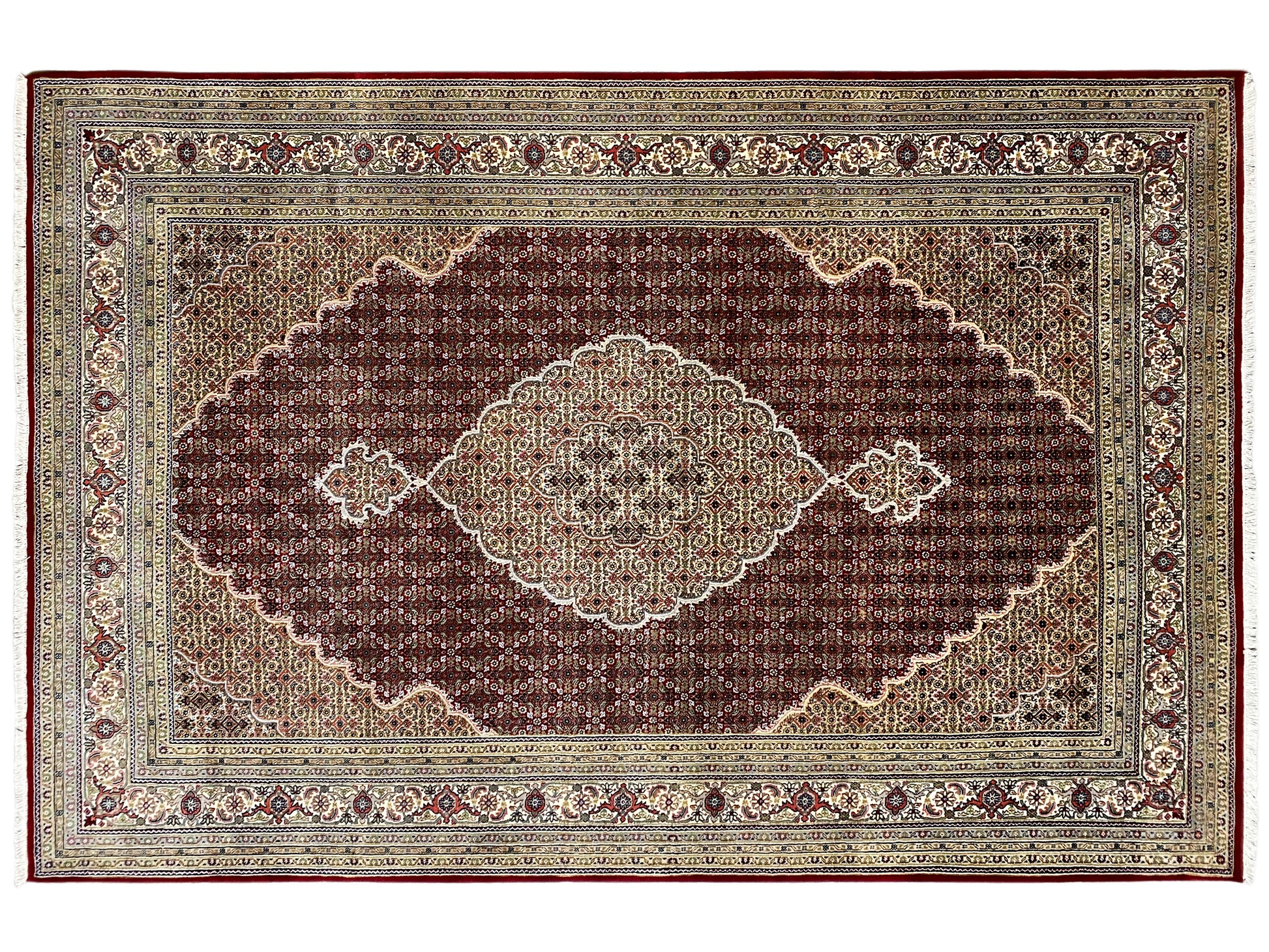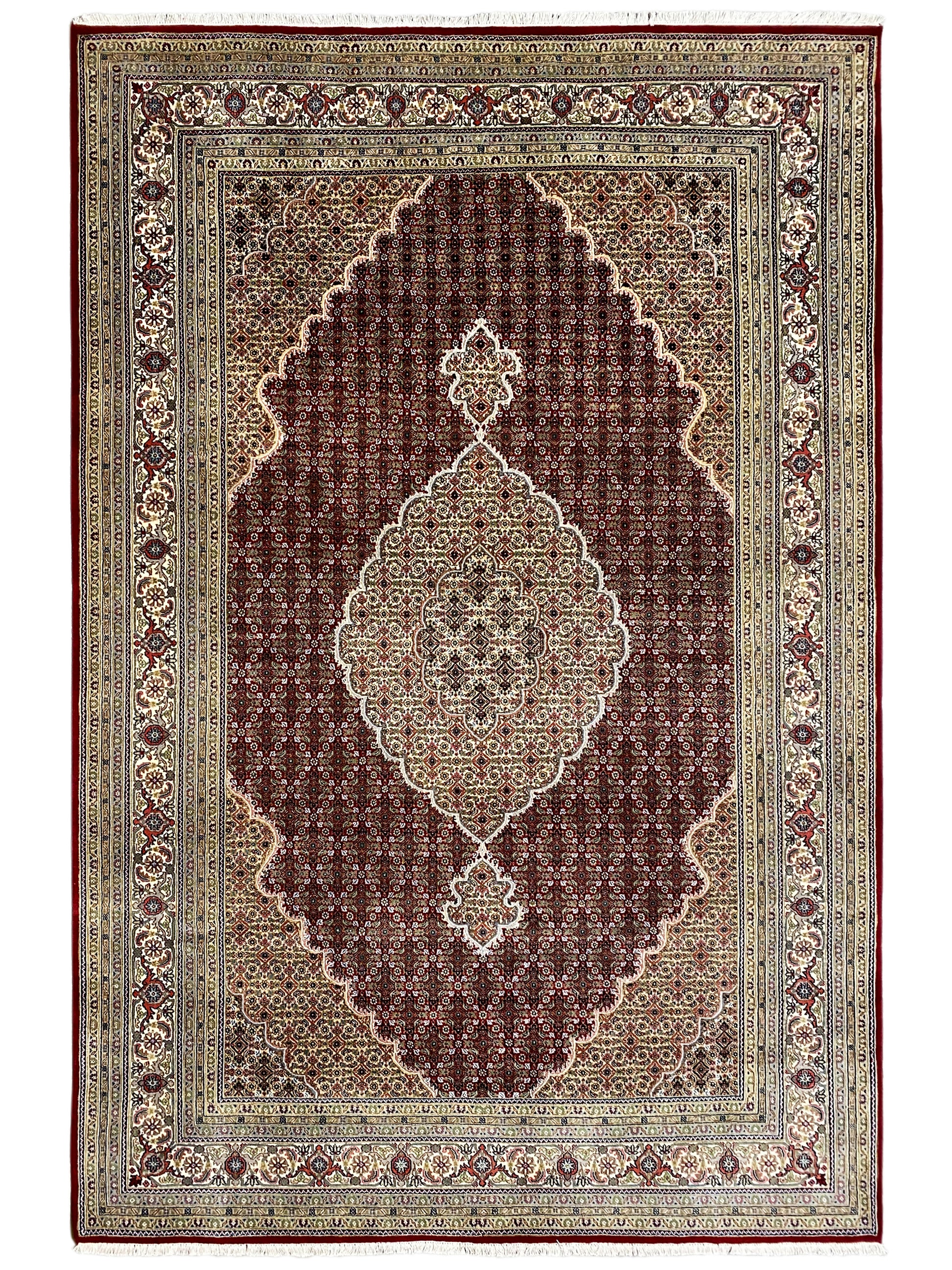 El Tabriz Mahi proviene originalmente de Persia. Sin embargo, hoy en día estas alfombras también se anudan a mano en India con los mismos estándares de calidad. Nuestros Mahi son alfombras de alta calidad y elegancia, hechas con lana fina. Las alfombras tienen colores intensos, claros y profundos y, debido a su buena fabricación, son muy resistentes.