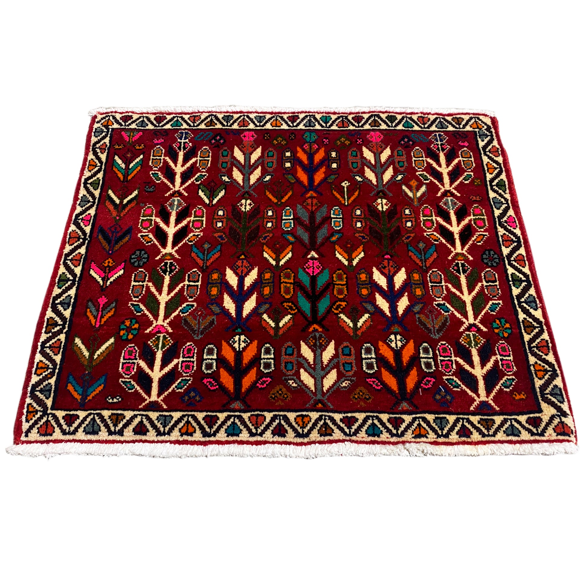 Sumérjase en la rica artesanía del sur de Irán con esta alfombra Poshti única, tejida a mano. Conocidas como "Torkey", estas hermosas piezas provienen del hábil grupo tribal "Tork". Este ejemplar, hecho de lana y algodón, se presenta en un tono rojo profundo, atravesado por un vibrante patrón vegetal estilizado dispuesto de manera uniforme en múltiples colores. Con unas medidas de 69x58 cm, esta alfombra es una pieza ideal para destacar, que aporta a cualquier espacio un toque de decoración tradicional y profundidad artística. Su robustez y diseño detallado la convierten en un verdadero punto focal.